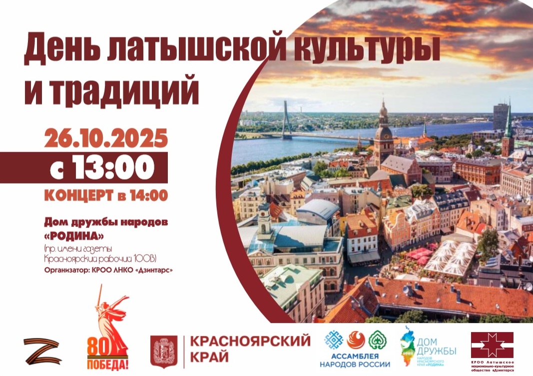 Мероприятие призвано содействовать диалогу между культурами и сохранению духовных ценностей латышского народа и проходит при поддержке управления общественных связей Губернатора Красноярского края, Агентства молодежной политики и реализации программ общественного развития, Красноярского регионального отделения "Ассамблеи народов России".