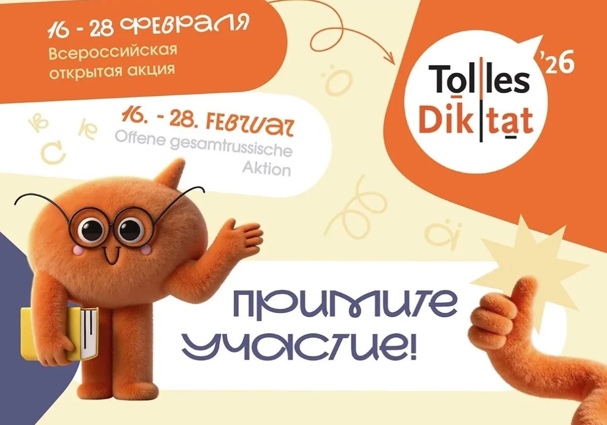 С 16 по 28 февраля 2026 года в 14-й раз пройдет Всероссийская открытая акция «Tolles Diktat» по инициативе общественных организаций российских немцев. Акция направлена на развитие культуры грамотного письма на немецком языке, а также на популяризацию историко-культурного наследия и достижений немцев России.