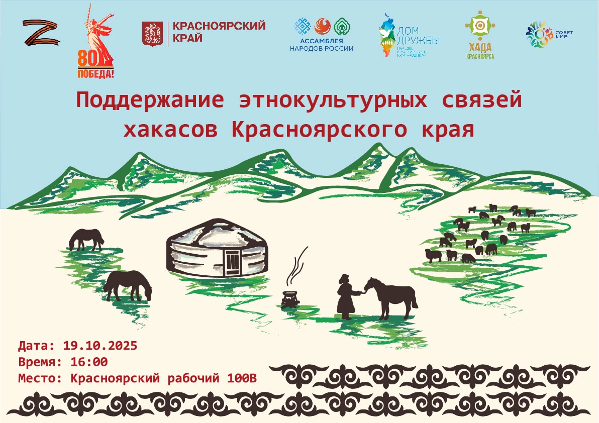 Дом дружбы народов «Родина» приглашает на мероприятие, посвящённое уникальному наследию и традициям Хакасии. Встреча состоится в рамках государственной программы, направленной на укрепление межнационального согласия и поддержку этнокультурного многообразия Красноярского края.