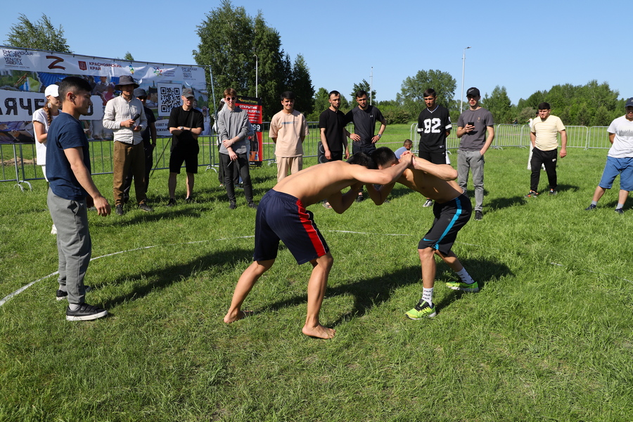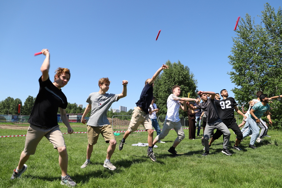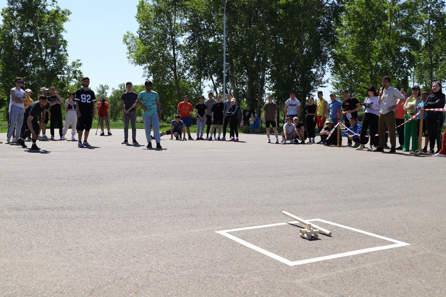 Молодежь соревновалась в национальных видах спорта. Зрители не только болели, но и узнавали новое о традициях и народных забавах. Например, некоторые первый раз видели, как происходит игра в городки. Это русская национальная забава, цель которой – разбить битой построенную фигуру, чтобы брусочки выкатились за пределы «города» - очерченной площадки.