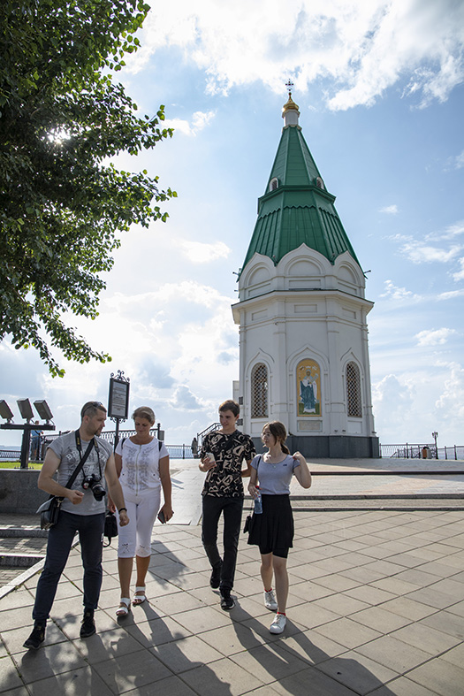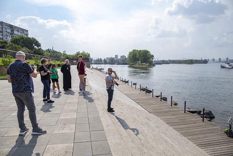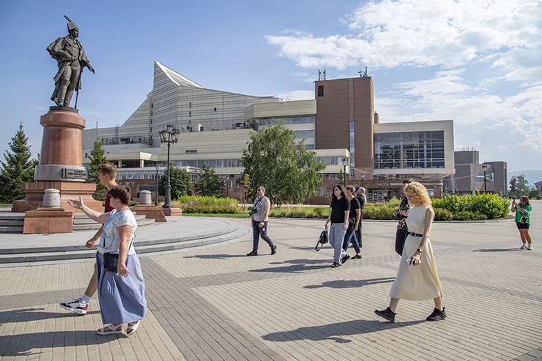 Экскурсия началась со сквера Энтузиастов и храмового комплекса. Гости полюбовались на левый берег с набережной Енисея. Их очень удивила скорость, с которой несёт свои воды наша сибирская река. В познавательном путешествии были элементы квеста, среди заданий были такие как поиск «фортепиано» на Театральной площади (здание Большого концертного зала), «Столбы» (музейный центр «Площадь мира») и «кукурузу» (здание КАТЭКНИИуголь). Также гостям рассказали о Виноградовском мосте, об истории командора Резанова и памятника ему, о Качинском остроге.