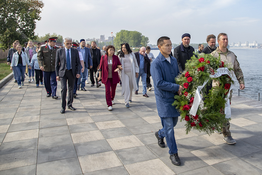 Третьего сентября в нашей стране отмечают День солидарности в борьбе с терроризмом. Установление этой даты связано с трагическими событиями 2004 года… Тогда, 19 лет назад, в школе № 1 города Беслана Республики Северная Осетия-Алания террористы захватили больше тысячи заложников, во время теракта погибли 334 человека, среди них 186 – дети… Бесланские события потрясли весь мир. Эту трагедию забыть невозможно. Нельзя забывать и тех, кто отдал свои жизни ради спасения детей. Второй год подряд в Красноярске проходят памятные мероприятия, посвященные светлой памяти погибших в терактах. В храме святого великомученика Феодора Тирона настоятель прихода Иоанн Боев провел молебен обо всех жертвах терактов. Сразу после этого в сквере Энтузиастов, у памятника бойцам специальных подразделений, известного среди горожан как «Боевая тройка», состоялся митинг. Память жертв терактов разных лет и погибших сотрудников правоохранительных органов почтили представители краевой власти, военно-инженерного института СФУ, общественных организаций, национально-культурных объединений, религиозные деятели, неравнодушные красноярцы. В митинге приняли участие Герой России, казак Енисейского войскового казачьего общества, замкомандира казачьей бригады «Сибирь» Олег Ликонцев, ветеран СВО, старший лейтенант, кавалер ордена «Мужества», преподаватель военного учебного центра при СФУ Игорь Балаболенко.