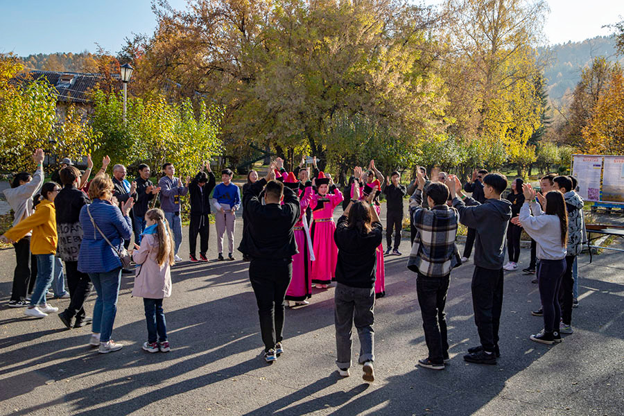 После торжественного открытия мероприятия перед гостями выступил фольклорно-хореографический ансамбль «Алтан Саг» (Золотое время) с приветственным танцем. И, конечно же, всех собравшихся увлекли в традиционный бурятский хоровод – Ёхор.
