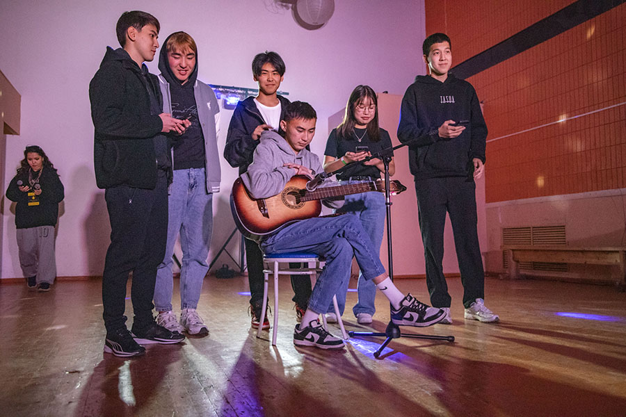 Здесь же состоялось посвящение первокурсников. Надо отметить, что первокурсники уже активно принимают участие в работе автономии и репетируют в ансамбле «Алтан Саг».