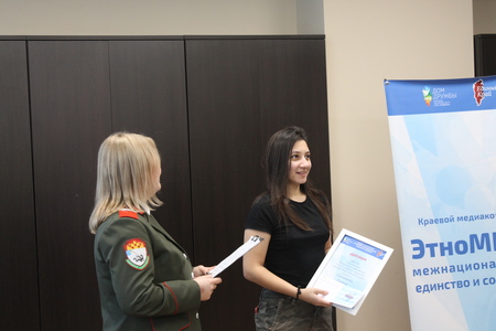 В номинации «Противодействие мигрантофобии, этническому радикализму и экстремизму» первое место жюри присудило Полине Каминской, специальному корреспонденту краевого телеканала «Енисей»; второе – Станиславу Осмоловскому, корреспонденту «Иланских вестей», третье – Светлане Рудских, корреспонденту «Идринского вестника».