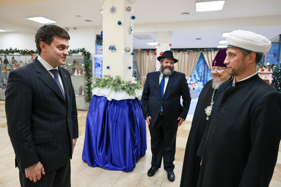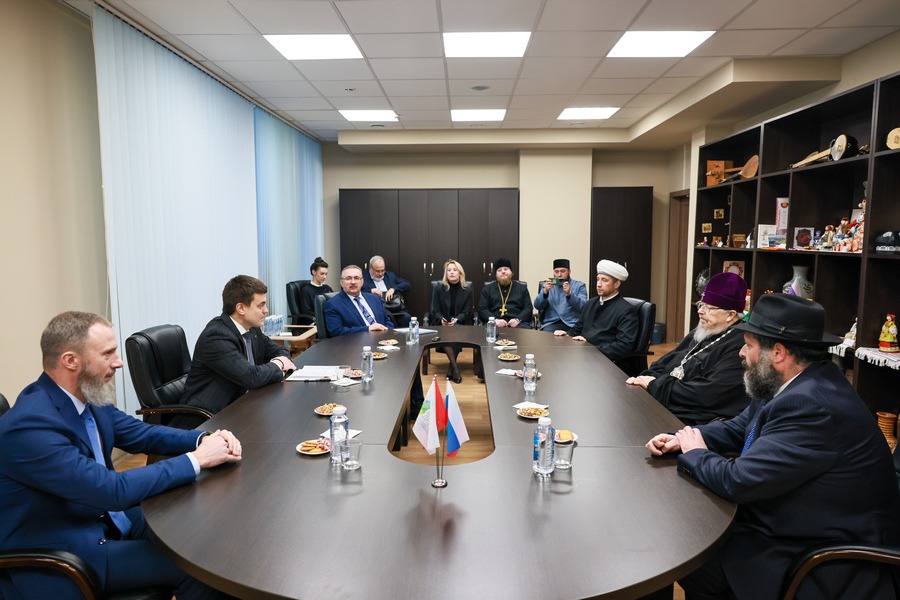 В Доме дружбы народов Красноярского края «Родина» состоялась встреча Губернатора Михаила Котюкова с митрополитом Красноярским и Ачинским Пантелеимоном, муфтием края Гаязом Фаткуллиным и главным раввином региона Беньямином Вагнером.