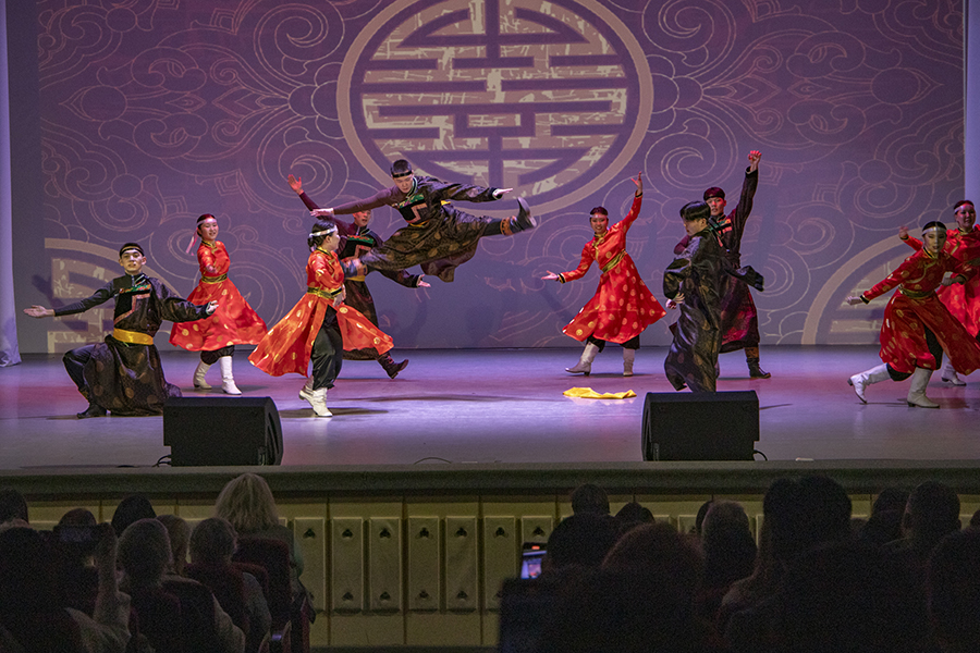 Весь вечер на сцене были хозяева праздника ансамбль песни и танца бурятской национально-культурной автономии «Алтан Гэрэл» (Золотистый свет) – «Алтан Саг».