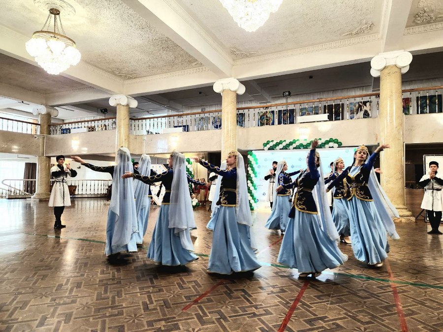 В колонном зале была представлена выставка национальных костюмов и предметов быта азербайджанского народа, здесь же расположилась тематическая фотозона. Ребятишкам делали аквагрим: все желающие могли перевоплотиться в сказочного персонажа.