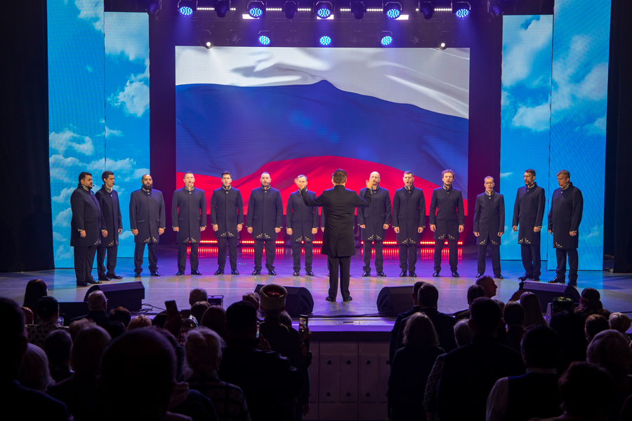 Торжественный старт вечеру дал Гимн России в акапельном исполнении Сибирского мужского хора, подхваченный всем залом. А следом мощным аккордом прозвучала песня «Моя родина — Сибирь» в исполнении ансамблей «Сибирская вечора» и «Енисейские зори», задав тон всему событию.