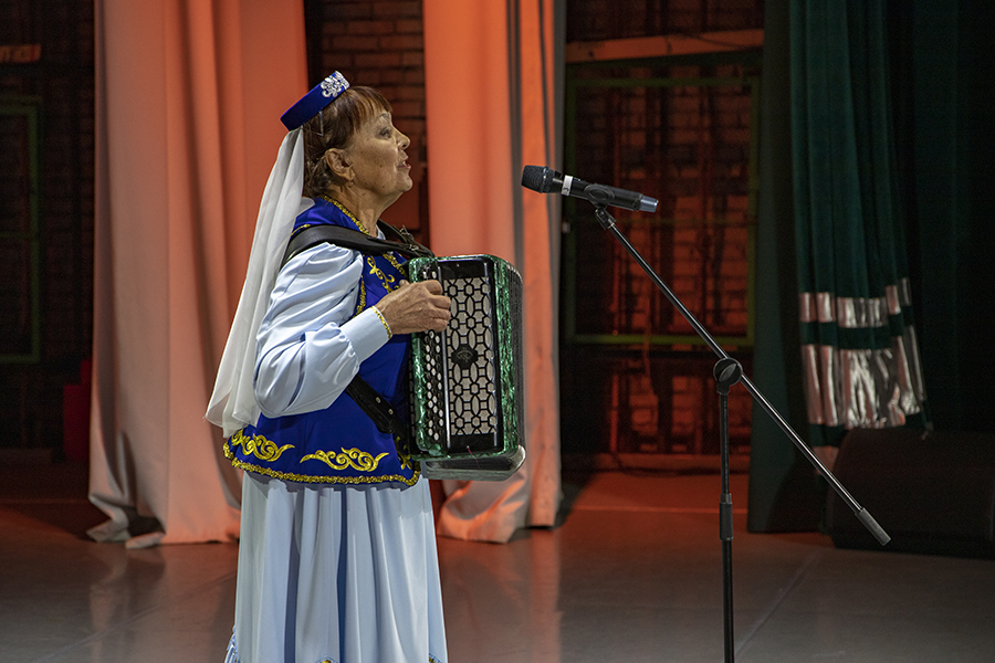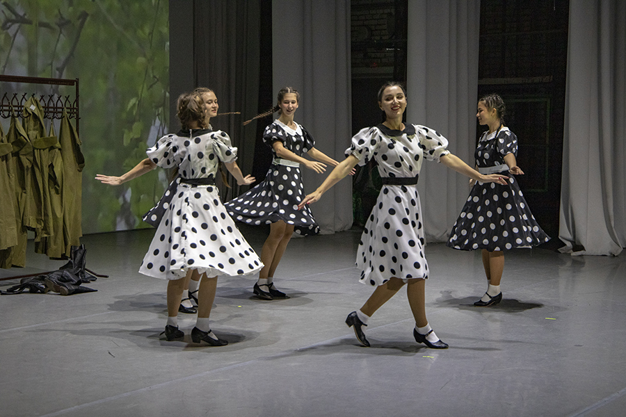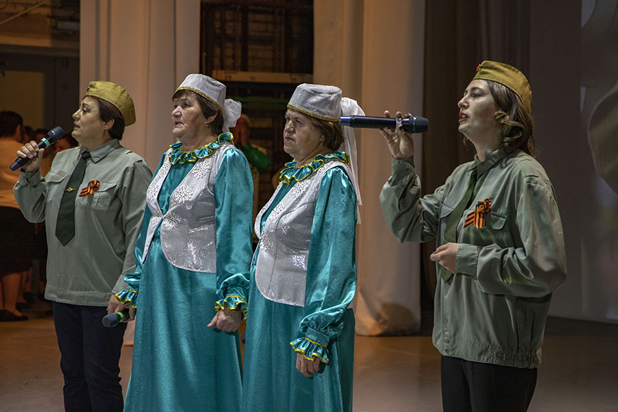 «Катюша», «Журавли», «Синий платочек» исполнялись на татарском и русском языках и одинаково трогали души зрителей. В это же время на полиэкране шли фотографии тех, кто ушёл на фронт.